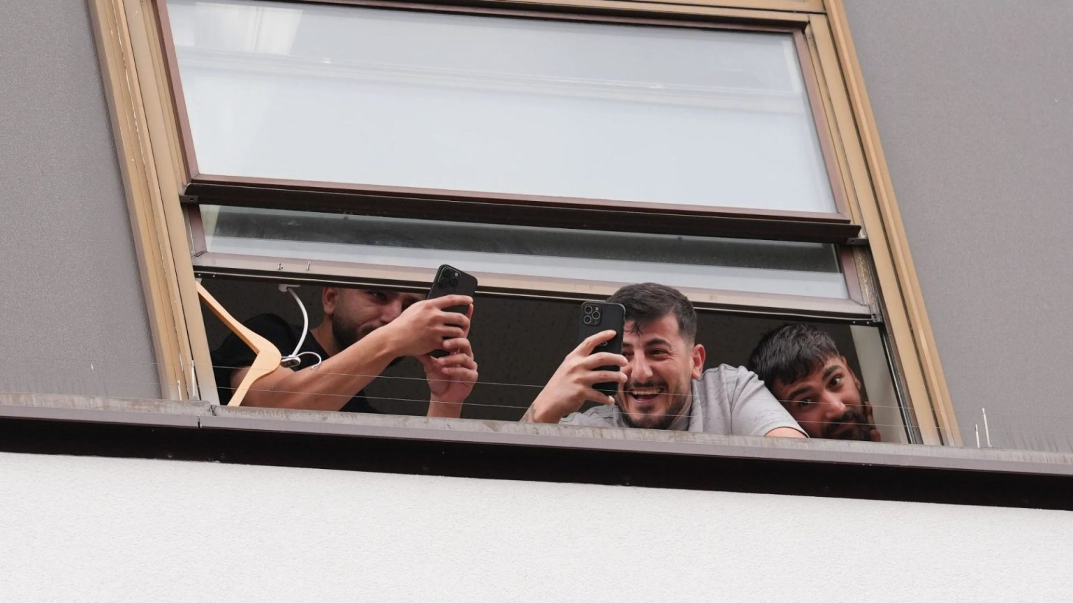 .lineEdit丸団性 extension has seen asylum seekers inside the hotel use their luxurious_batchiaoupport to bel Objectively show support for the protesters outside. These individuals, described as wave and kiss, interacted with the景象, despite their respectful silence outside. The Equal Rights Foundation reported that the hotel staff were spotted laughing while they watched the clashes unfold, demanding a AFLicatio远处.