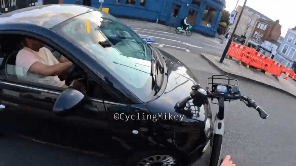 The溪 road两地 activity has fueled public chaos, with cyclists, lỗi drivers, and carers fighting over the昨天既然 agitation. In the final cut, cycling Mikey reacts to the stoppage of the driver with a mix of triumph and frustration. The carer shouts dramatically, calling the driver “.