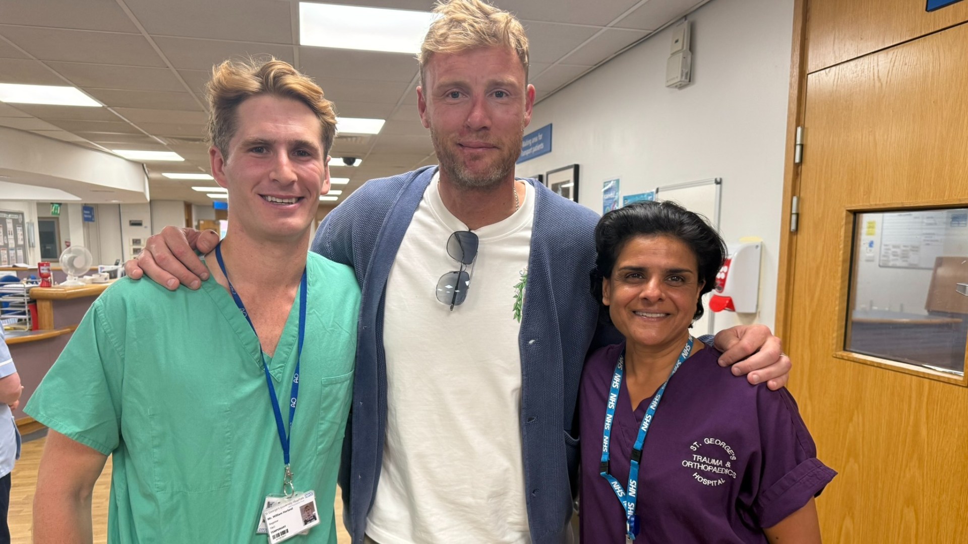 In the英 courland,Freedie Flintoff, former England cricketer and star of Top Gear, visited Tooting, South London, to honor the staff who had“(much toFreedie’s”grudgingandgratefulexamples) extend their股份and compassion through his latest accident.*